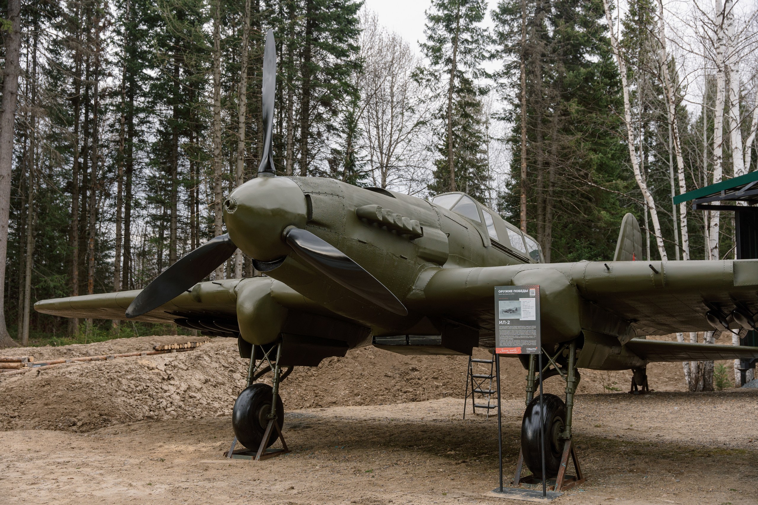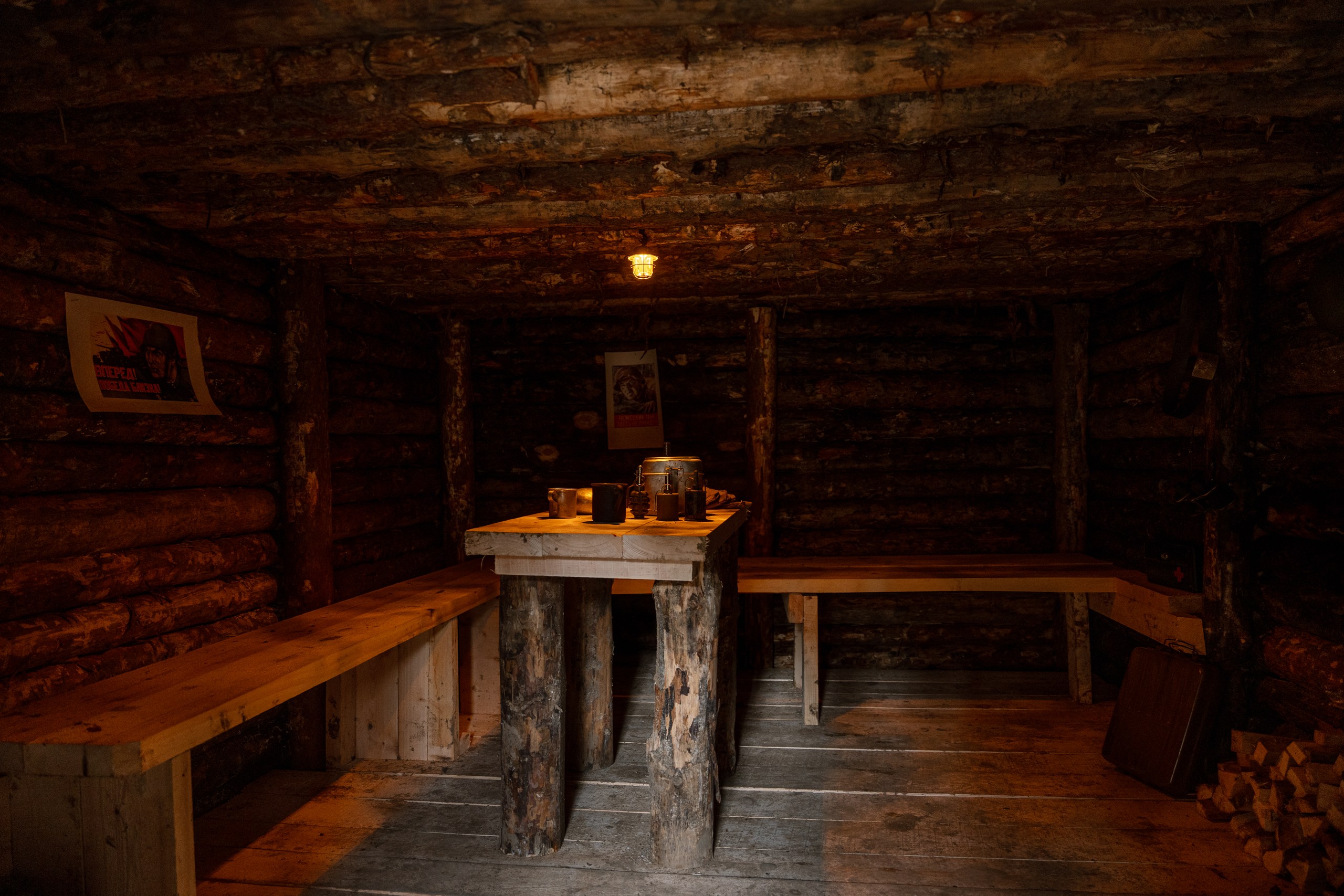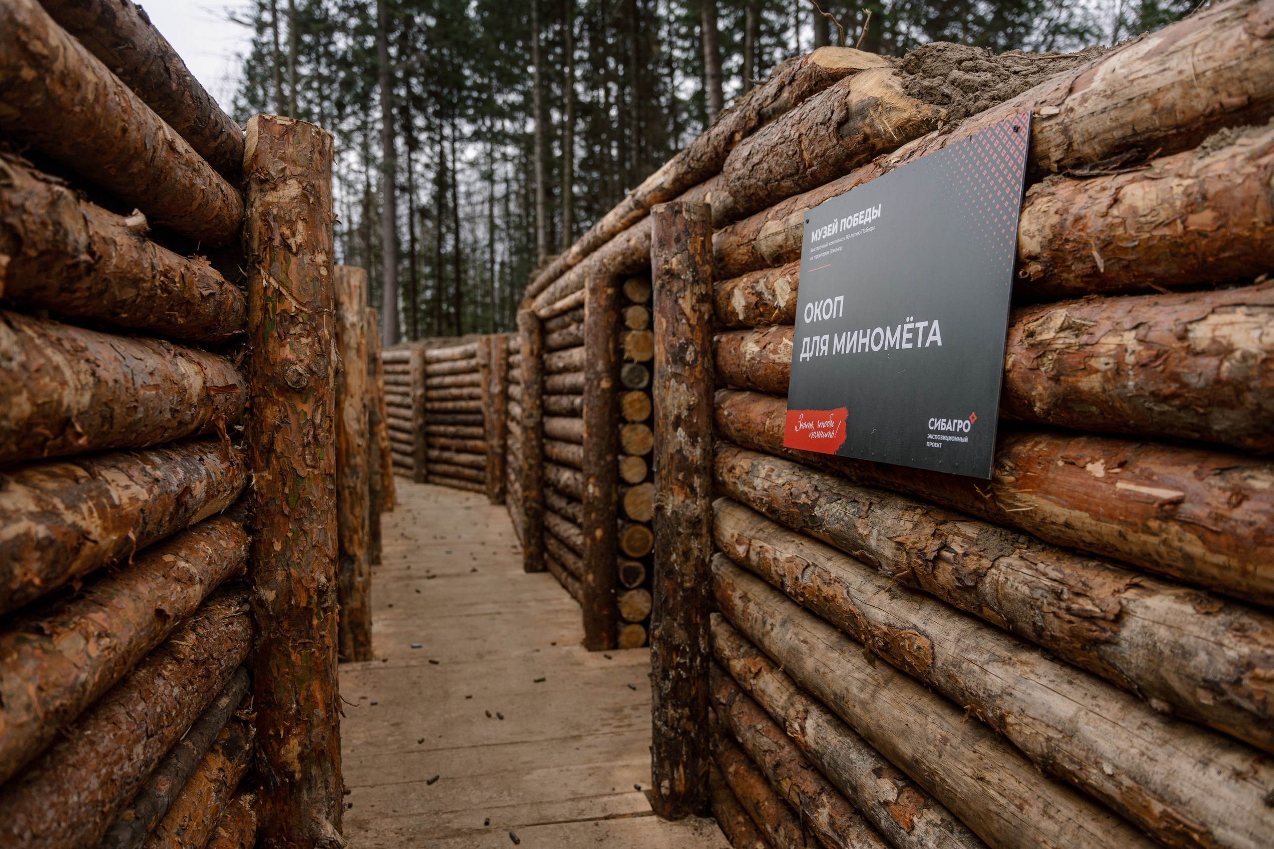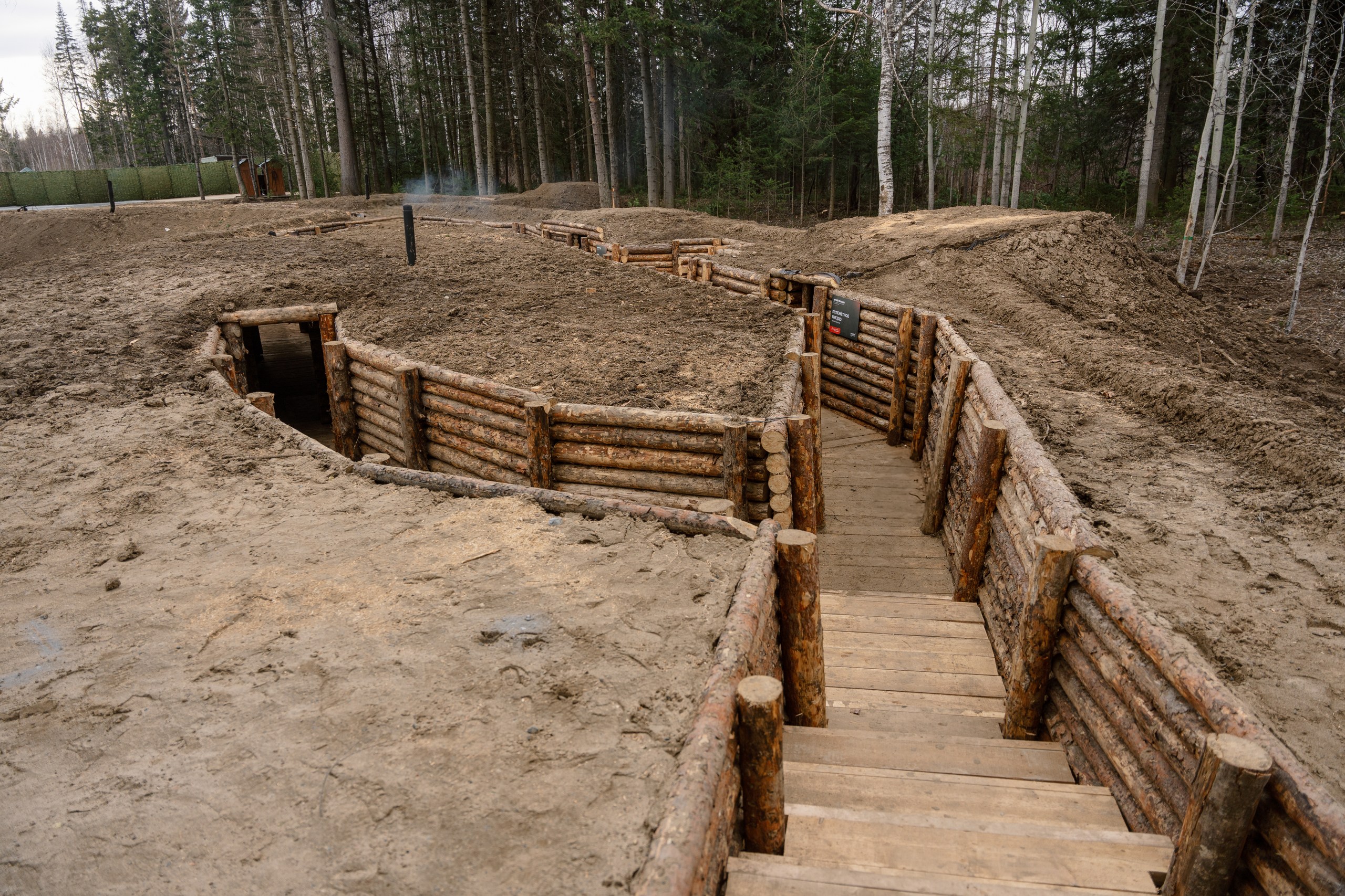 Для погружения в быт военных лет воссозданы фортификационные сооружения: окопы, штаб, медсанбат, землянка.
